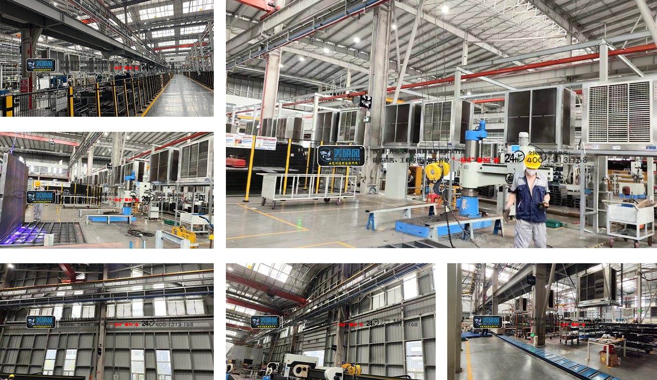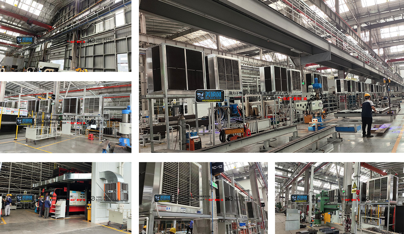 ? 焊接區(qū):“可移動排煙罩 + 蒸發(fā)式水簾冷風機” 組合,既通過排煙罩(排煙效率≥90%)精準捕捉焊接煙塵,又用冷風機定向降溫 4-6℃,解決 “高溫 + 污染” 雙重痛點,且無積水不影響焊接質量。