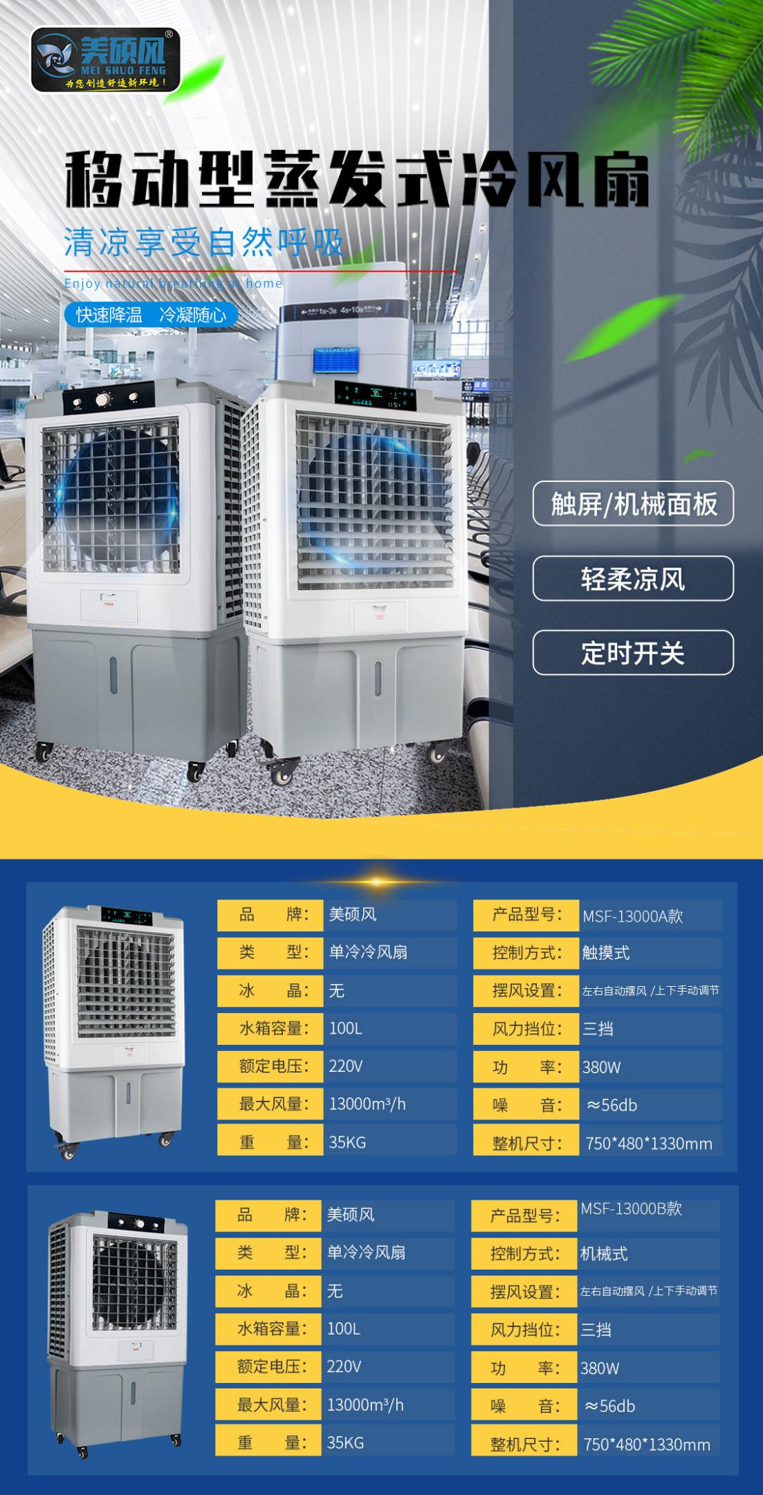 隨著立秋的來臨,天氣依然燥熱,降溫產(chǎn)品在人們生活的需求中并沒有減少。特別是移動型蒸發(fā)式冷風(fēng)扇,不管是在家用還是工業(yè)/商用,市場的認(rèn)可度非常高。而我們在選擇移動型蒸發(fā)式冷風(fēng)扇時,都希望能夠選購一款降溫快,質(zhì)量好,外形美觀,智能,還省電,性價比高的產(chǎn)品。但是市面上的移動型蒸發(fā)式冷風(fēng)扇品牌和型號繁多,價格也是高低不同,該如何選擇呢?針對這個問題,本文將向大家詳細(xì)介紹美碩風(fēng)移動型蒸發(fā)式冷風(fēng)扇系列產(chǎn)品。