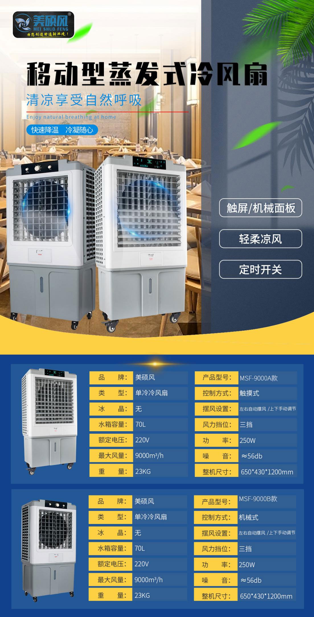 美碩風(fēng)移動型蒸發(fā)式冷風(fēng)扇系列有(家用/商用款)和(工業(yè)/商用款)多款不同型號多款產(chǎn)品,可以讓您輕松選購到理想的產(chǎn)品。無論您是家用還是工業(yè)用或者商用,選購移動型蒸發(fā)式冷風(fēng)扇,本文都能為您提供有益的參考。